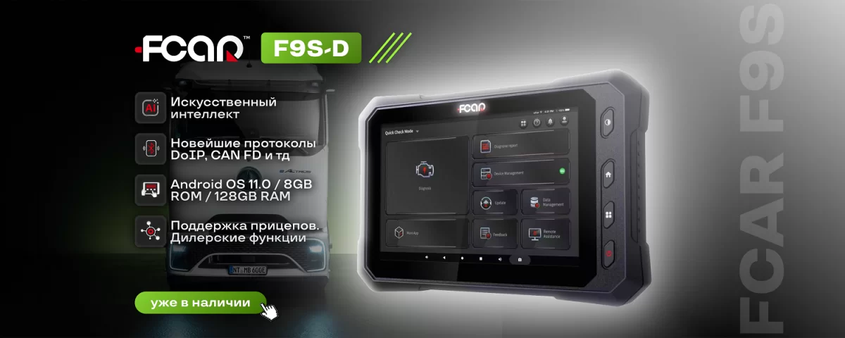 FCAR F9S-D — универсальный мультимарочный сканер нового поколения, предназначенный для диагностики грузового транспорта и специализированных машин.