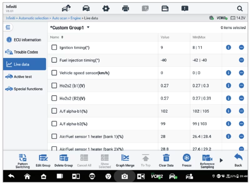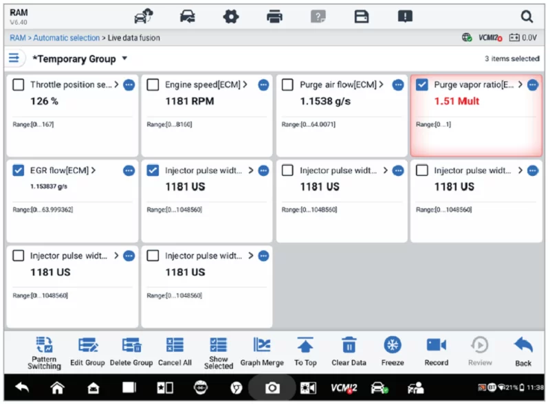 - Выбор нескольких значений в для одновременного анализа связанных параметров. Идеально подходит для диагностики неисправностей двигателя, производительности и выбросов.