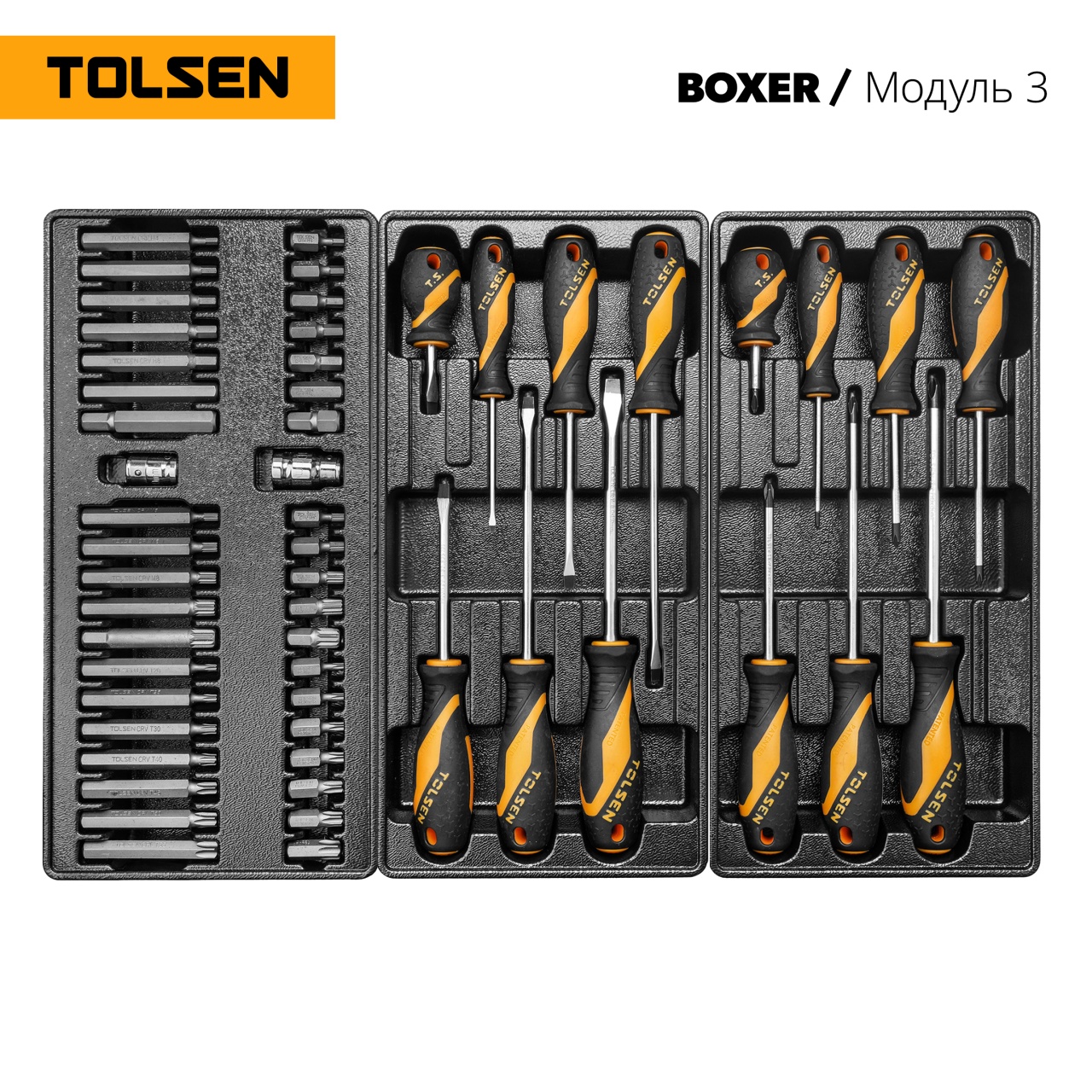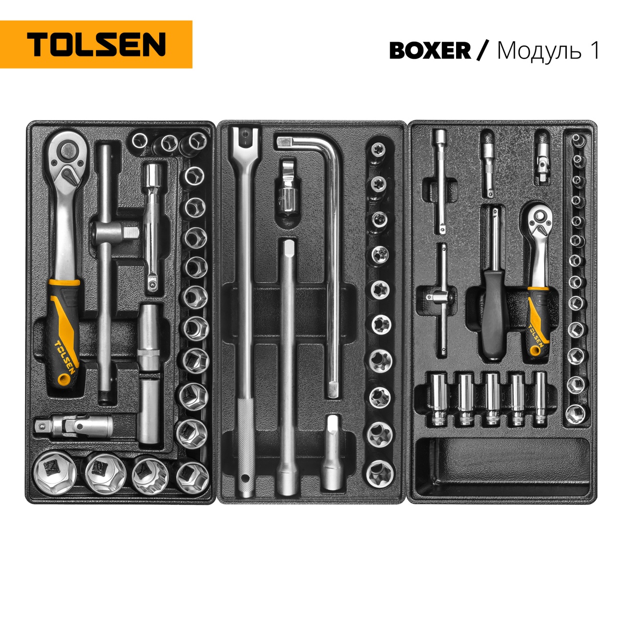 Стандартизация размеров ложементов позволяет разместить наборы на ваше усмотрение в любом варианте организации рабочего пространства – по типу, назначению или частоте использования. Вы всегда будете иметь под рукой тот инструмент или приспособление, которое вам необходимо в данную минуту, а ячейки ложементов позволят содержать набор в полном порядке.