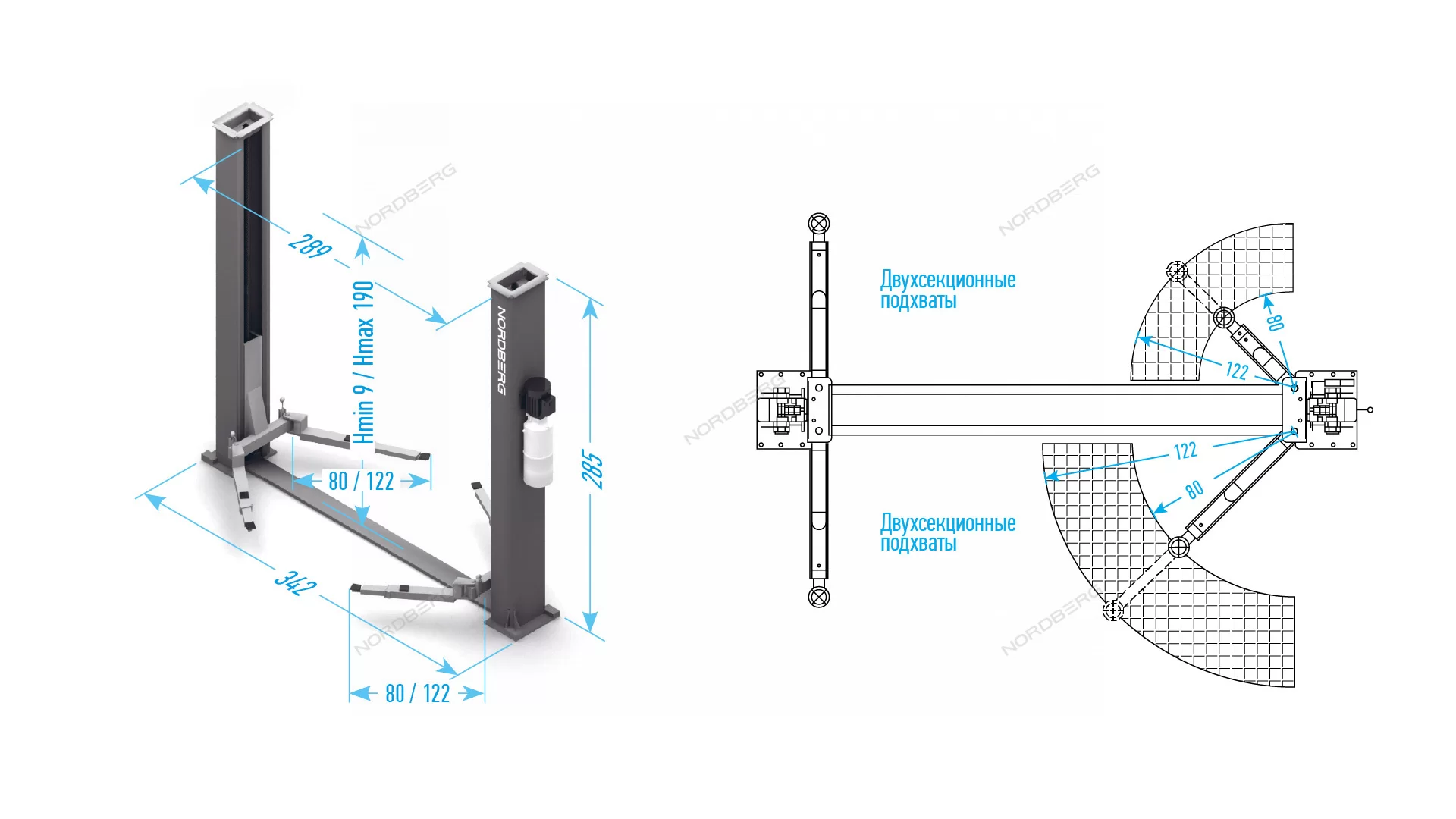 Двухстоечный электрогидравлический подъемник 4 т, 380 В NORDBERG N4120BM-4B_380 синий