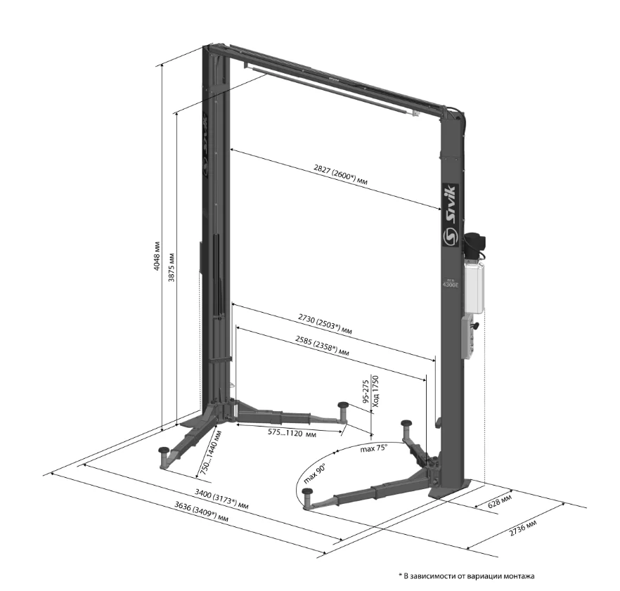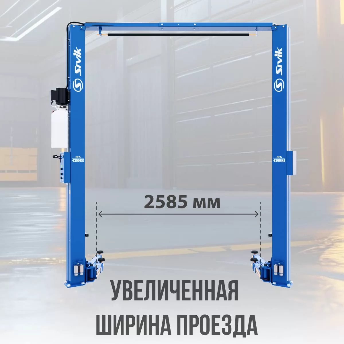 Подъемник можно установить в двух вариациях: с увеличенной шириной проезда 2585 мм и со стандартной шириной проезда 2358 мм