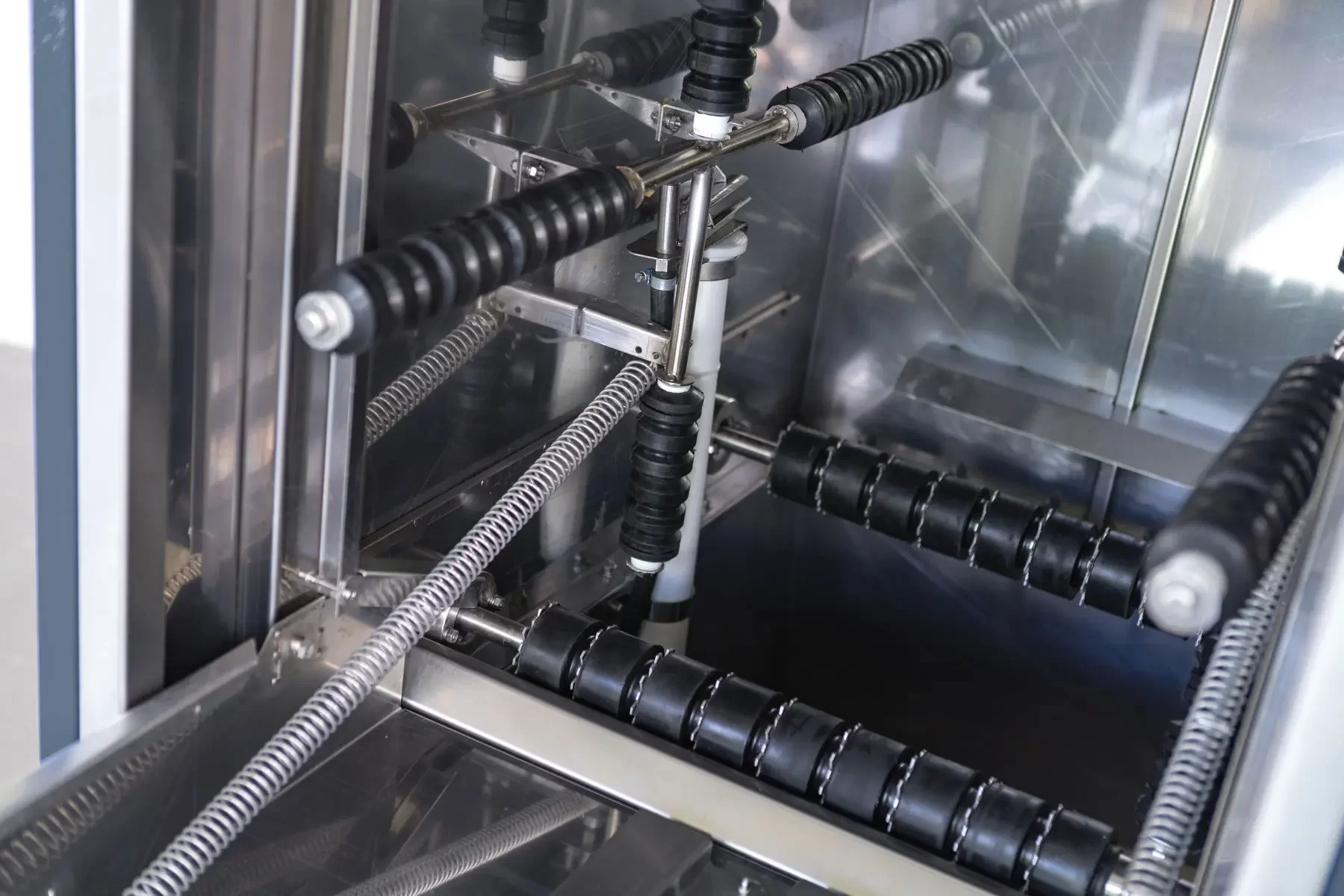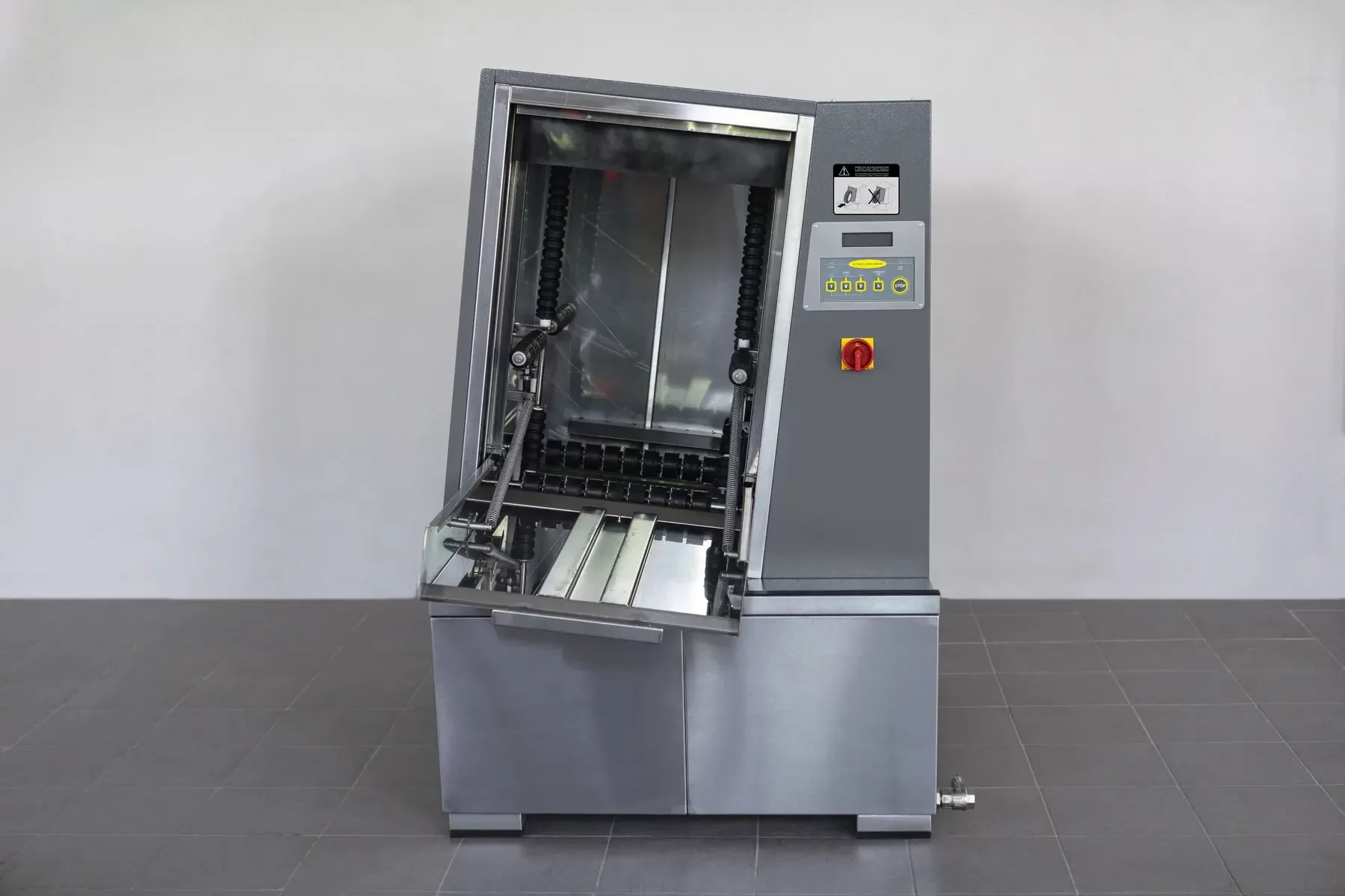 Моечное отделение, ванна и валы (в том числе приводные) выполнены из нержавеющей стали. Автоматическая мойка проста в обслуживании и не требует специальных навыков или приспособлений.