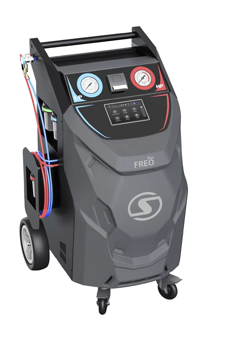 Установка для заправки автокондиционеров FREO BUS оснащена большими внедорожными колесами, позволяющими работать вне автосервиса и делают станцию более мобильной и удобной.